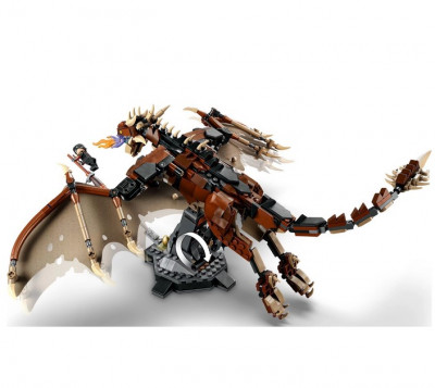 У модели из кубиков черная чешуя, шипастый хвост и огненное дыхание - прямо как в фильме Венгерский хвосторог. Это знаменитое существо представляет собой забавную модель и прекрасное украшение для детской комнаты, а его подвижные реалистичные крылья двигаются. Рукоятка на задней части модели позволяет грациозно поднимать и опускать ее, раскладывая крылья на весь размах - более 40 см. Эта коллекционная фигурка стоит на прочной основе и сопровождается минифигуркой Гарри Поттера на метле.