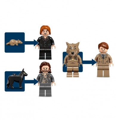 В набор входят 7 минифигурок: Гарри Поттер, Гермиона Грейнджер, Рон Уизли, Сириус Блэк, профессор Римус Люпин, Питер Петтигрю, оборотень; а также 2 фигурки животных: черный пес и коричневая крыса Короста.