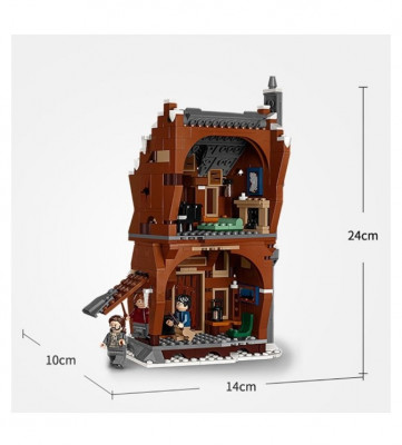 Двухэтажная визжащая хижина в точности следует своему прототипу, показанному в фильмах Гарри Поттер и Узник Азкабана и Гарри Поттер и Дары Смерти. На первом этаже есть не только рабочая входная дверь, но и специальный проход сбоку, чтобы имитировать потайной лаз-портал у гремучей ивы. На первом этаже воспроизведен холл с креслом, картиной и столиком с фонарем. На втором этаже расположена комната Сириуса Блэка с роялем, камином, спальным местом и картиной на стене.