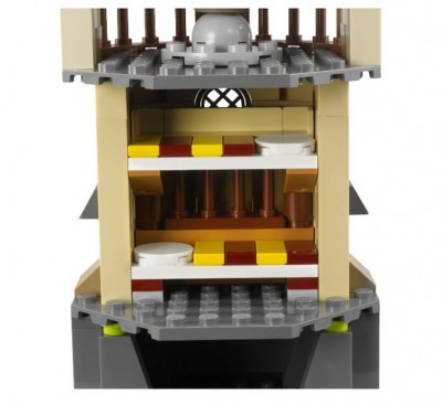 Из светло-бежевых, оливковых и серых деталей вам предстоит собрать две дозорные башни магической школы. Каждая из башен отлично детализирована и включает в себя три этажа и подвальное помещение.