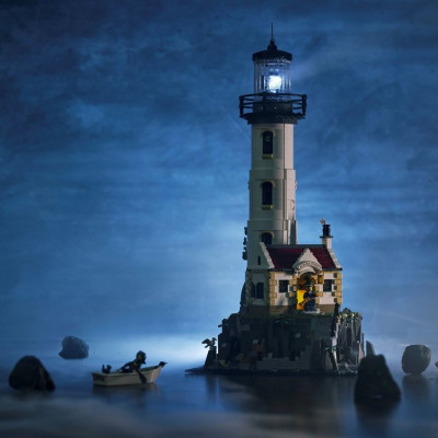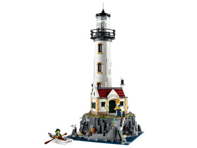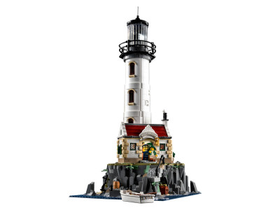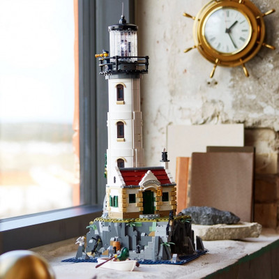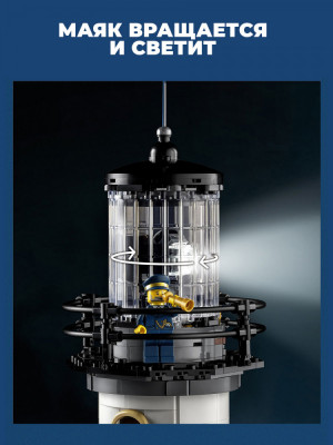 Дайте волю своему творчеству, собирая эту модель моторизованного маяка. В нем есть башня маяка с моторизованным вращающимся освещением и специально разработанными линзами Френеля, а также коттедж со светящимся камином. Коттедж и башня легко доступны, чтобы вы могли увидеть удивительно детализированные интерьеры, и они расположены на кирпичном скалистом обнажении со ступенями, ведущими к пирсу и пещере, содержащей пиратские сокровища. Минифигурки смотрителя маяка и моряка, а также сборная гребная лодка и фигурки чаек и кошек дополняют восхитительную экспозицию.