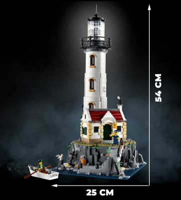 - Модель моторизованного маяка для демонстрации - раскройте свой творческий потенциал с помощью этого детализированного сборного маяка на скалах с пирсом и ступенями, пещерой и домиком смотрителя маяка.