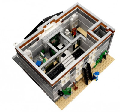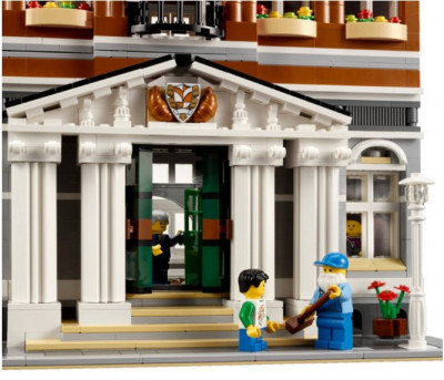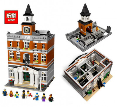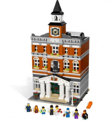 В наборе есть всё, чтобы вы могли собрать городскую Ратушу в три этажа. Модель отлично проработана и детализирована. Вы можете увидеть лестничные площадки, высокие башенные часы с колоколами, и широкое окно в крыше. Загляните в него!