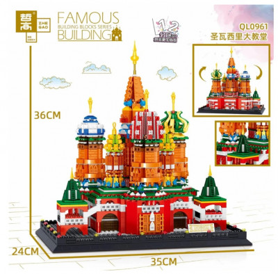 Из деталей конструктора ZHE GAO «Собор Василия Блаженного» Вы сможете построить детализированную копию памятника русской архитектуры. Это православный храм, расположенный на Красной площади в Москве. Он объединяет десять церквей, каждая из которых построена в честь очень почитаемых личностей. Восемь церквей — четыре осевые и четыре поменьше между ними — увенчаны луковичными главами и сгруппированы вокруг возвышающейся над ними центральной столпообразной церкви в честь Покрова Пресвятой Богородицы, завершённой шатром с маленькой главкой. Собор входит в российский список объектов Всемирного наследия ЮНЕСКО и является филиалом Государственного исторического музея.