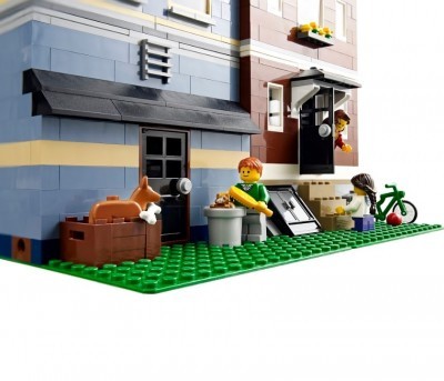 Вторая часть локации также имеет три этажа, но на первом этаже располагается зоомагазин с видной вывеской «Pets» (по-английски «животные»). Фасад этой части таунхауса выполнен из голубых блоков с добавлением желтой окантовки.