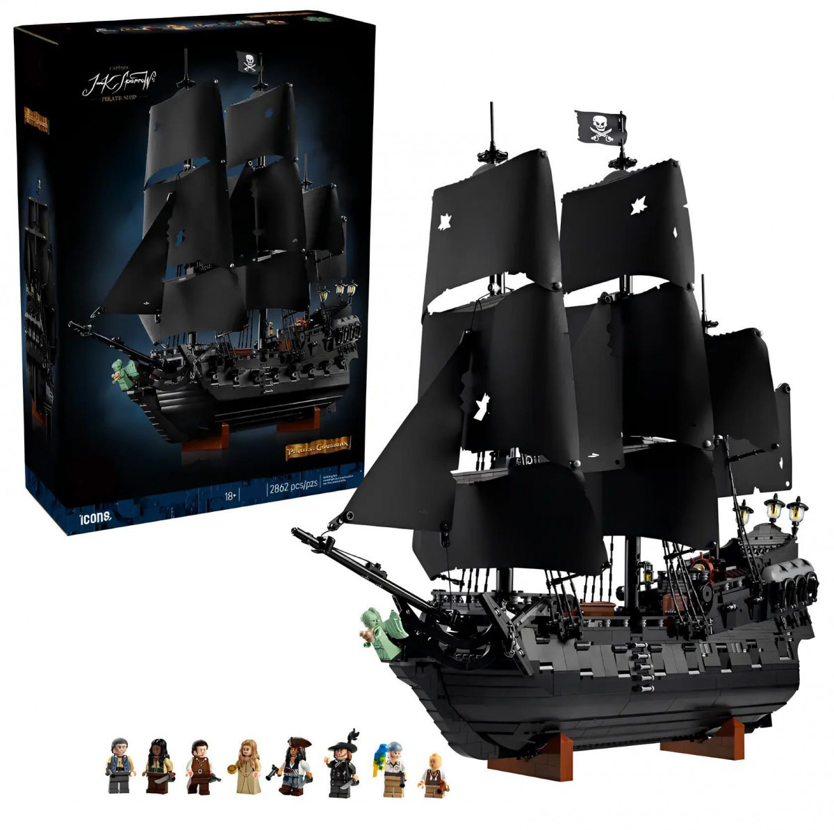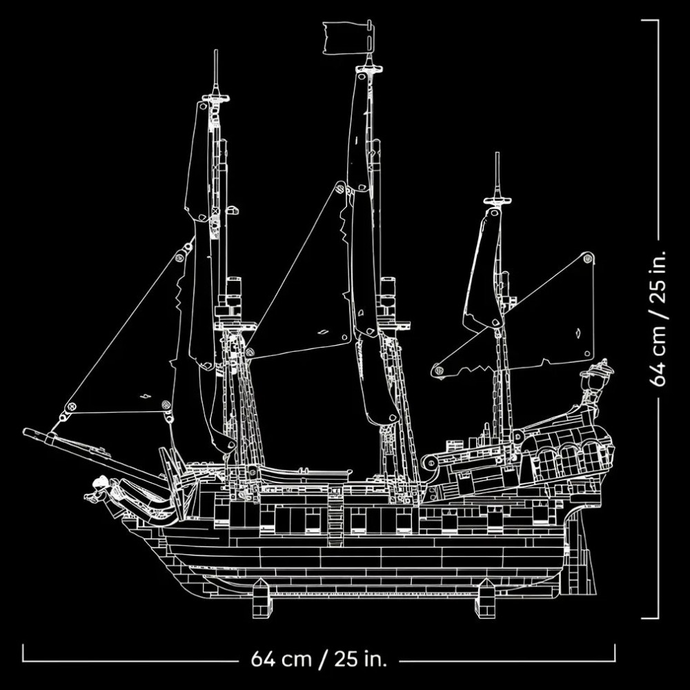 В набор входят 8 минифигурок: Джек Воробей, Уилл Тёрнер, Гиббс, Коттон, Анамария, Марти, Элизабет Суонн, Гектор Барбосса. Разместите их на палубе, у пушек или в каюте — и корабль оживёт, наполнившись голосами и смехом.