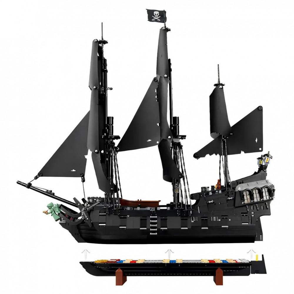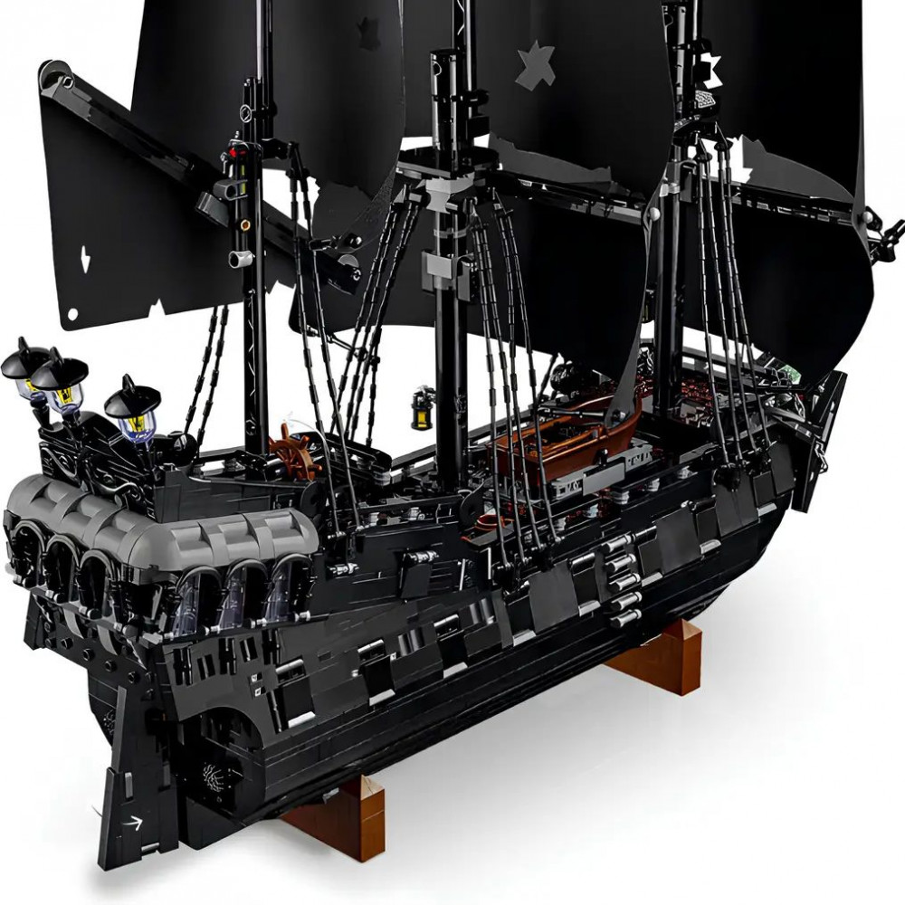 Над бескрайним океаном, где горизонт сливается с небом в золотистой дымке заката, появляется силуэт — величественный пиратский корабль, несущий на своих бортах легенды Карибского моря. Это не просто судно, а «Чёрная жемчужина» во всём её грозном великолепии, воссозданная в наборе.