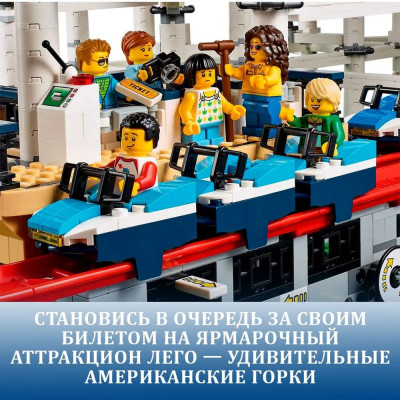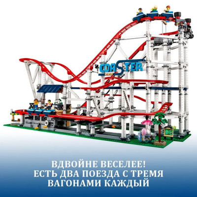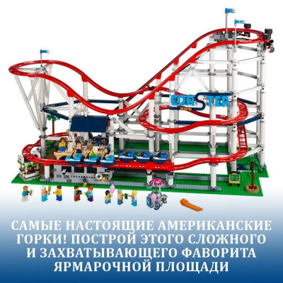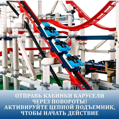 Из 4619 деталей вы сможете собрать самый захватывающий аттракцион парка развлечений – американские горки. Да-да, с помощью подробной инструкции вы возведете каркас и закрепите на нем рельсы, по которым будет двигаться вагончик с пассажирами. Поездка на таком аттракционе обещает быть очень экстремальной, ведь в конструкции предусмотрены и резкие виражи, и медленный подъем под чрезвычайным углом и сверх резкий спуск. Эмоции и адреналин для смельчаков обеспечены. Сразу после выхода из аттракциона можно будет приобрести фотографии, сделанные во время движения.