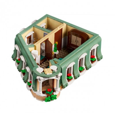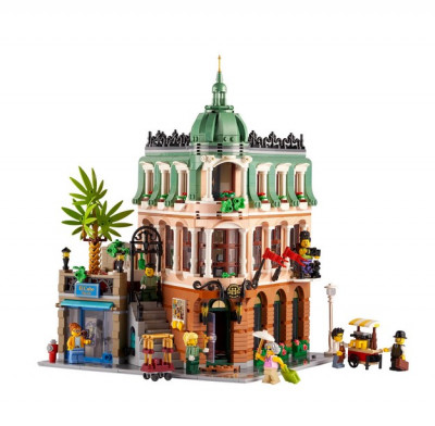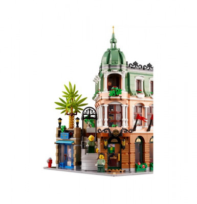 В комплект входит множество тематических аксессуаров, позволяющих создать особую атмосферу в Бутик-отеле. Например, мебель в классическом стиле, элементы декоративной отделки фасада здания и внутренних площадей, посуда, личные аксессуары для каждой минифигурки (зонтики, чемоданы, ключи от номеров, шляпы, бокалы и пр.). Номера трехэтажной гостиницы полностью меблированы и оборудованы осветительными приборами, текстилем и другими предметами быта. Каждый отдельный этаж оформлен в своем собственном самобытном стиле. Здесь есть и номера люкс, и стандартные варианты, и пентхаус. У фасада гостиницы есть пристройка — картинная галерея с панорамными окнами-витриной, сквозь которую можно рассмотреть работы художников-абстракционистов.