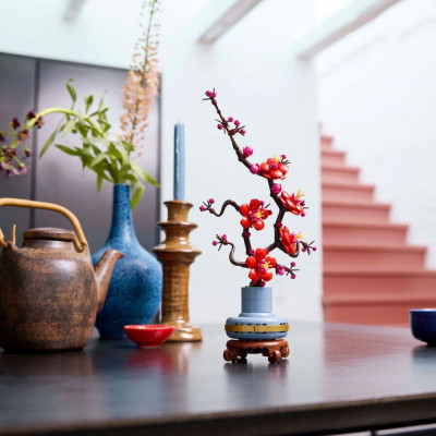 • Творческий конструктор для любителей растений: в этот креативный набор входит все необходимое для создания цветка сливы, а также пастельно-голубого горшка с золотой полосой и подставкой, имитирующей древесину.
