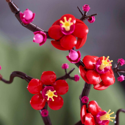 • Детализированный набор с цветами для новичков и опытных строителей: эта интерпретация цветущей сливы имеет элегантный древесный стебель и яркие красно-пурпурные цветы.