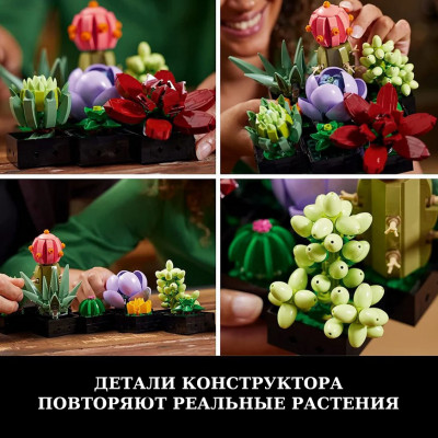 Суккуленты - популярный способ ввести растения в дом и украсить ваш интерьер. Теперь вы можете наслаждаться продуманным строительным проектом, создав элегантную растительную экспозицию для своего жилого пространства с помощью этого набора Succulents для взрослых. Не торопитесь, создавая все детали 9 разных суккулентов, каждый из которых вдохновлен реальным сортом. Затем продемонстрируйте свои творческие способности с помощью идеальной витрины для растений, не требующей особого ухода.Каждый суккулент поставляется в своем собственном маленьком контейнере. Объедините их, чтобы создать 1 композицию, разместите их небольшими группами или покажите по отдельности по всему дому, офису или комнате в общежитии. Этот набор также станет отличной идеей подарка для любителей растений, а с 3 отдельными буклетами с инструкциями это идеальный проект для друзей и семьи.
