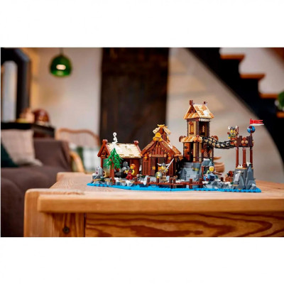Отправьтесь в путешествие во времени, собирая и исследуя эту детально проработанную игровую модель Деревня викингов. Идеальный подарок для любителей истории и викингов! Модель состоит из 3 соединяемых секций: кузницы, длинного дома вождя и сторожевой башни, а также включает минифигурки кузнеца, вождя, воительницы и лучника, которые оживляют сцену.