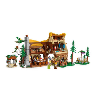 Конструктор «Коттедж Белоснежки и семи гномов» из 2228 деталей имеет размер 35*20*20 см. Окунитесь в мир волшебства и соберите лесной домик, окруженный деревьями, из сказки про Белоснежку. Постройте внутренние комнаты двухэтажной избы с чердаком и чуланом, спальней, столовой и большим камином с дымоходной трубой. Рядом с домом разместите живописный колодец и стеклянный гроб, в котором отравленная злодейкой красавица ждала поцелуя принца, который пробудит ее от сна. В набор входят 10 минифигурок персонажей: Белоснежка в платье, Принц Флориан в плаще, Злая Королева в капюшоне с яблоком, семь гномов: Умник, Ворчун, Весельчак, Соня, Скромник, Чихун, Простачок с лопатами, кирками и драгоценными камнями, а так же фигурки белки, зайца и птиц. Создавайте свои игровые сценарии и новые сюжеты из мира Дисней и украшайте выставочную полку.