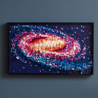 Это впечатляющее произведение искусства создано из 3091 многослойных кирпичиков и деталей для создания 3D-эффекта невероятной глубины и текстуры.. Он включает в себя некоторые из самых известных достопримечательностей Млечного Пути, включая Trappist-1, Плеяды, Крабовидную туманность и Столпы Творения. Также имеется плитка "Вы здесь", показывающая место Земли в галактике.