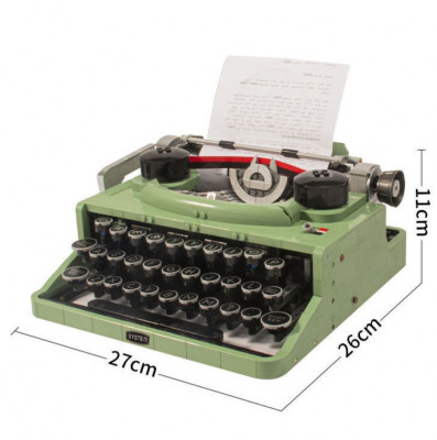 Корпус Печатной машинки собран из деталей мятно-зеленого цвета. Под ним скрывается замысловатый механизм, полностью имитирующий работу своего оригинального прототипа. При нажатии любой клавиши Печатной машинки в действие приводится центральный литерный рычаг, ударяющий по листу бумаги, а каретка с документом сдвигается влево на ширину одного символа. Весь процесс сопровождается звуками, в точности повторяющими работу настоящей печатной машинки. При изготовлении клавиш не используются наклейки, символы на них нанесены печатным способом. В правой части подвижной каретки расположена ручка, вращающая опорный валик. С ее помощью можно заправить в каретку настоящий лист бумаги! В левой части находится рычаг, с помощью которого каретка возвращается в начало новой строки.