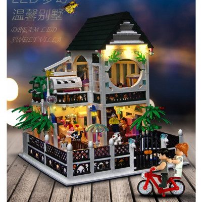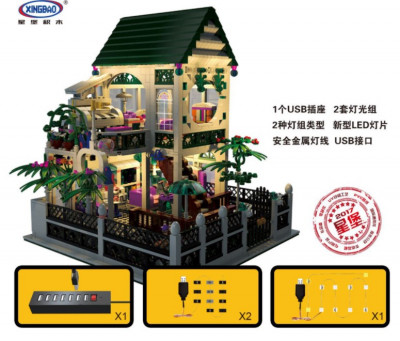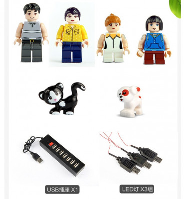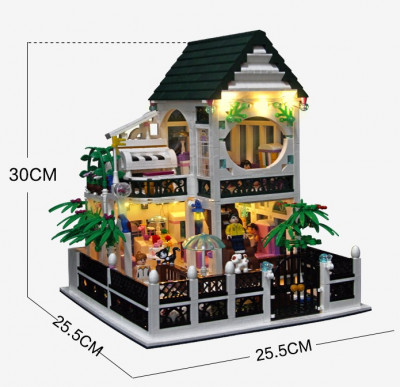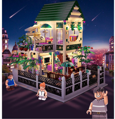 Из деталей набора вы сможете собрать красивый Романтический домик с подсветкой. В набор входит 3 фигурки и 2 животных. Дом состоит из 2х этажей и небольшого сада.