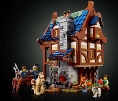В набор входят 4 минифигурки: кузнец, 2 рыцаря отряда Черный Сокол и лучница; а также животные: лошадь, 2 собаки и лягушки.