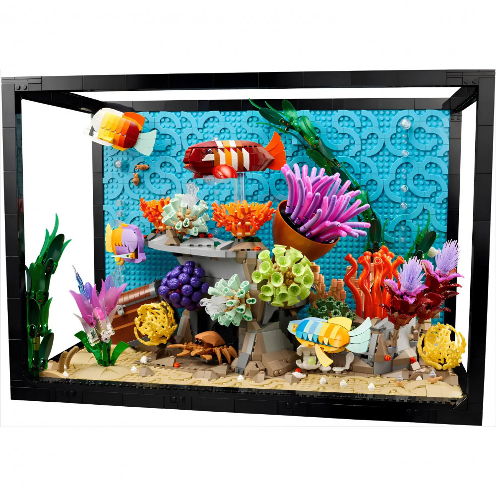 Этот аквариум для домашнего декора оснащен множеством увлекательных функций. Вращайте ручки и рычаги, чтобы оживить плавающую рыбу, колышущееся коралловое тело, краба, выходящего из подводной пещеры, и открывающийся сундук с сокровищами. Аквариум включает в себя 4 модели рыб, разнообразные растения и кораллы, морских червей и раковину устрицы с жемчужиной, а также морских улиток и пузырьки воздуха.