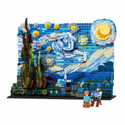 Развивайте креативность. Развивайте концентрацию. Собери свою собственную трехмерную версию одной из самых знаменитых работ Винсента Ван Гога Звездная ночь, которую можно увидеть в Музее современного искусства (MoMA) в Нью-Йорке. Откройте для себя инновационные методы строительства, чтобы запечатлеть закрученные мазки кисти Ван Гога, и повесьте готовый шедевр на крючок на стене или повесьте его отдельно. Эта великолепно детализированная модель поставляется с регулируемым кронштейном дисплея, на котором может стоять минифигурка Винсента Ван Гога с кистью, палитрой и мольбертом.