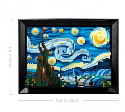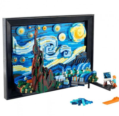Развивайте креативность. Развивайте концентрацию. Собери свою собственную трехмерную версию одной из самых знаменитых работ Винсента Ван Гога Звездная ночь, которую можно увидеть в Музее современного искусства (MoMA) в Нью-Йорке. Откройте для себя инновационные методы строительства, чтобы запечатлеть закрученные мазки кисти Ван Гога, и повесьте готовый шедевр на крючок на стене или повесьте его отдельно. Эта великолепно детализированная модель поставляется с регулируемым кронштейном дисплея, на котором может стоять минифигурка Винсента Ван Гога с кистью, палитрой и мольбертом.