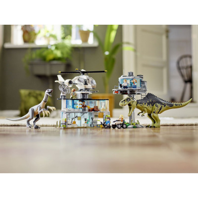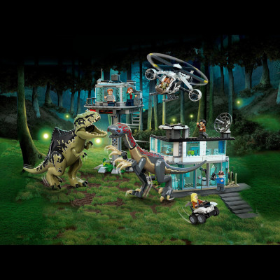 Создайте свои собственные приключения с динозаврами с помощью этого крутого строительного набора по мотивам фильма «Мир Юрского периода: Господство». В нём есть штаб с лабораторией, вездеходный багги, гараж, наблюдательная башня и вертолёт. Воплотите свои истории в жизнь с шестью минифигурками — Оуэна Грэди, Клэр Диринг, доктора Алана Гранта, доктора Элли Сэттлер, Кайлы Уоттс и доктора Генри Ву — плюс фигурками гигантозавра и теризинозавра.