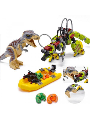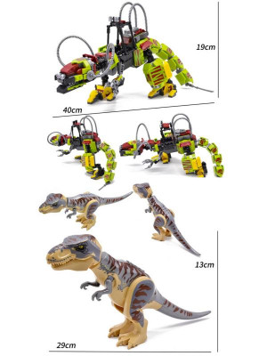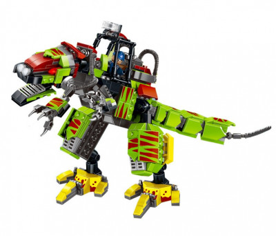 Собирай Дино-Мех с открывающейся кабиной. Внутри него перед приборной панелью сидит довольный Дэнни. Изнутри он может управлять головой, конечностями и даже челюстями робота. Тираннозавр Рекс также оснащен подвижной головой и конечностями, а его челюсти могут грозно защелкиваться.