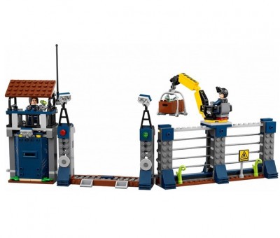 Правая зона – забор, находящийся под напряжением. На вершине ограды можно заметить подъемный кран. С его помощью работники кормят хищников и спасают малышей динозавров, оказавшихся на чужой территории.