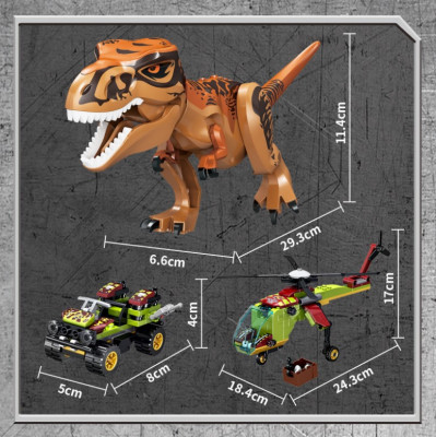 Конструктор Бой тираннозавра и робота-динозавра, Парк Юрского периода 740 деталей 11337