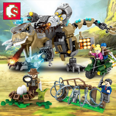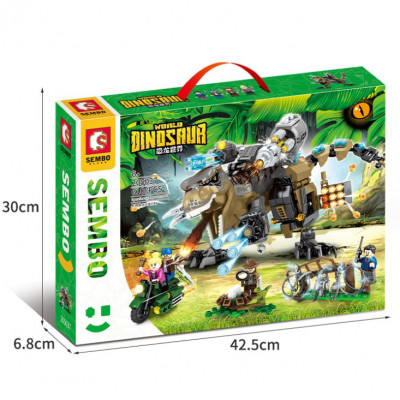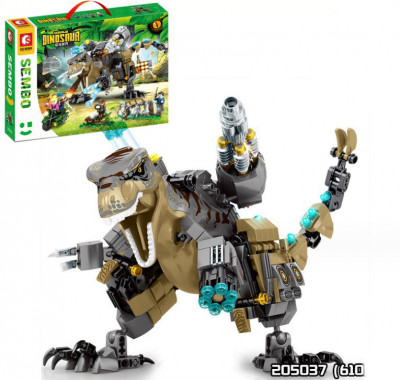 Конструктор Боевой робот Тираннозавр от производителя Сембо. Современные технологии и тяга к разрушениям позволили человеку сделать из древних ящеров живое оружие. Из самого опасного ископаемого хищника сделали настоящую машину для разрушений. Нижние конечности заменили на манипуляторы из сверхпрочного металла, вместо одной верхней лапы сделан протез с острыми когтями, а вместо второй — многозарядный пулемет. На спине и левом бедре размещен целый арсенал: кассетная ракетница, лазерная пушка и автоматический боевой комплекс. Вместе с минифигурками четырех ученых создайте свои игровые сценарии. Изучение возможностей применения военных технологий в биологии может увлечь не только детей, но и взрослых, а также позволит придумать немало сюжетов в духе Jurassic World.