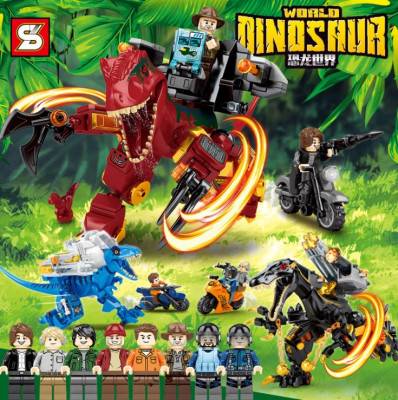 Набор Битва 4 динозавров с фигурками Парк Юрского периода 947 деталей (Jurassic World SY1504-ABCD)
