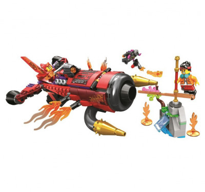 С набором Бешенный турболет Ред Сана дети и взрослые смогут разыграть самые яркие сцены сражений между такими героями, как Манки Кид и злодеем Ред Саном. Комплект состоит из 299 деталей, включающий в себя минифигурку Манки Кида с золотым посохом, антигероя Ред Сана с силовой перчаткой и быка-клона Боба с реактивным ранцем и огнеметом.