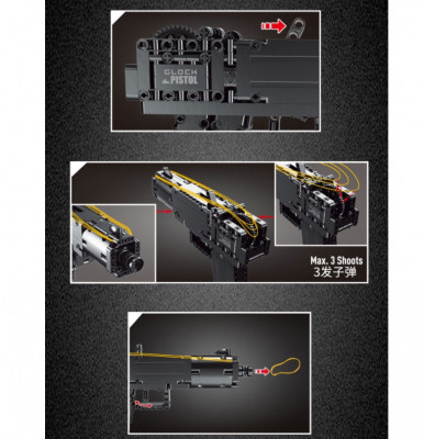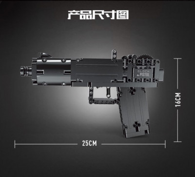 Конструктор «Автоматический пистолет Глок», разработанный фабрикой Моулд Кинг — высококачественный набор серии Милитари, полностью совместимый с Лего. Собери действующую модель легендарного полицейского оружия. Из 288 деталей создается уникальный образец черного цвета: удобная рукоять, защищенный спусковой крючок, мушка для прицельной стрельбы. Пистолет стреляет резинками — максимум три выстрела за один заряд, дальность полета до 4 метров. Пополняйте коллекцию резинкострелов с нашим интернет-магазином.
