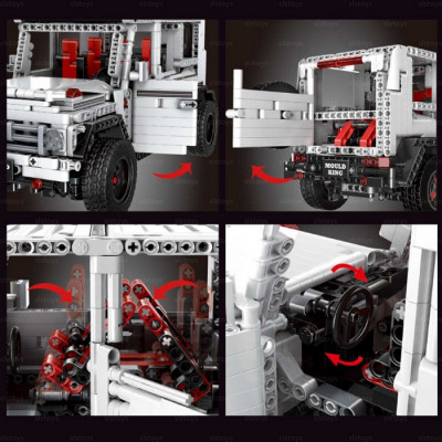 В передней части сборной модели конструктора Джип располагается мощный капот, на котором