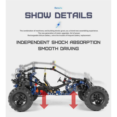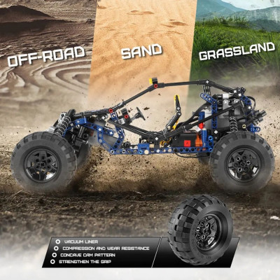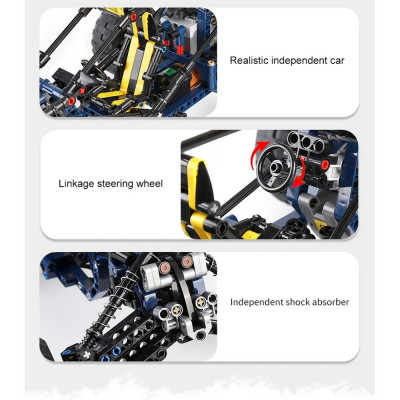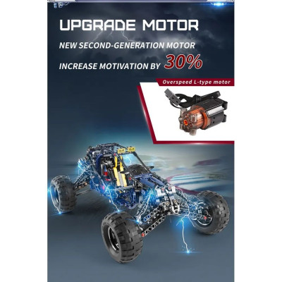 Конструктор «Racing Buggy RC» от производителя Mould King. Набор из 515 деталей принадлежит к разделу «Техник», к категории «Машины». Радиоуправляемая модель облегченного внедорожника предназначена для участия в гонке по пересеченной местности. Завышенная подвеска с мощными амортизаторами, рамная конструкция и два сверхмощных мотора Black Furious — гарантия победы в любых испытаниях, а яркий дизайн в сине-желтых тонах порадуют глаз любого поклонника Technic. Создавайте свои игровые сценарии из мира экстремального автоспорта, благодаря дистанционному управлению и надежному сцеплению кубиков.Набор электрики: блок питания с приемником радиосигнала — 1 шт., L-мотор Hyper Speed — 2 шт., Servo-мотор — 1 шт., пульт ДУ — 1 шт., приложение App для смартфона; в набор НЕ ВХОДЯТ элементы питания для пульта типа AAA — 2 шт. Внимание! Заряжать аккумулятор необходимо только через USB-разъемы компьютера, ноутбука или Power Bank. Зарядка напрямую от сети 220В через адаптер с исходящим током более 1А может вывести из строя аккумулятор!!!