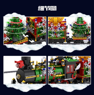 Предлагаемый конструктор «Рождественский поезд» с музыкой, подсветкой и дымом из трубы является одним из наборов входящих в новогоднюю серию.