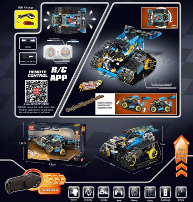 В передней части Technic скоростного вездехода, идущего с ДУ, располагается мощная система освещения и металлическая защита. Центральное место в спортивном авто занимает защищенная от внешних воздействий металлическим каркасом кабина управления. В задней части Техник скоростного вездехода размещается вся двигательная система транспорта, включающая поршни, механизмы, выхлопные трубы, другое. Здесь же располагается спойлер, обеспечивающий высокие аэродинамические свойства авто во время решающего гоночного заезда.