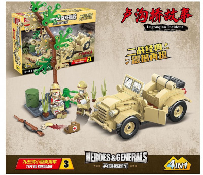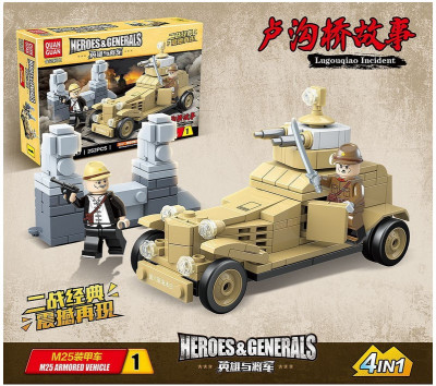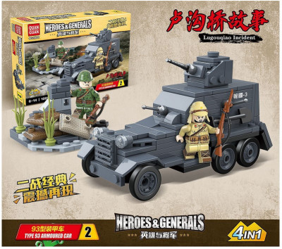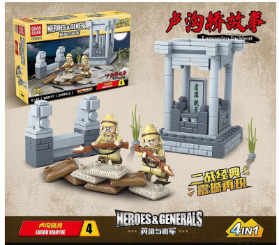 Обладателю конструктора 100117 Quanguan Инцидент на мосту Марко Поло (Лугоу) – набор 4 в 1 нужно постараться воссоздать военное столкновение. В полночь с 7 на 8 июля 1937 года японская артиллерия начала обстрел крепости с западного берега реки Лугоу, или иначе Реки Вечного Спокойствия.