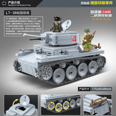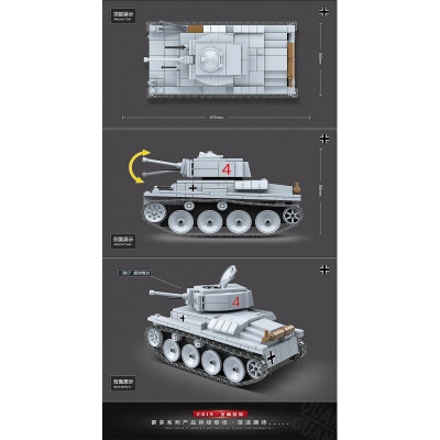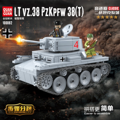 Предлагаемый конструктор 100082 Quanguan Лёгкий немецкий танк LT vz.38 PZKPFW 38(t) позволит ребёнку собрать хорошую копию этой бронированной машины: