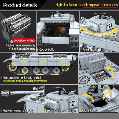 Модель среднего танка, который был создан немцами во время Великой Отечественной войны как ответ на появившиеся у Советской армии легендарные «тридцатьчетвёрки». В конструкторе из пластика производители постарались воссоздать точный уменьшенный вариант этой бронетанковой машины. Поэтому им пришлось использовать достаточно большое количество строительных «кирпичиков». Ребёнку предстоит построить танк буквально с нуля, работа получается достаточно длительной. Но результат его обрадует, ведь в собранном виде техника из набора 100064 Quanguan Танк «Пантера» предстанет в виде огромной игрушки: