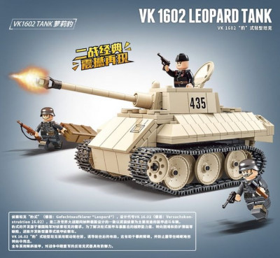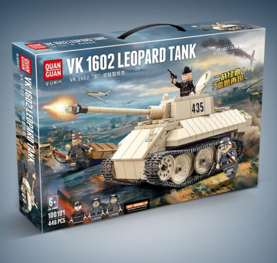 Модель наделена игровым функционалом. У танка поворачивается башня, меняется угол обстрела орудия, ходовая часть точно имитирует работу гусениц. Включение в комплектацию конструктора 100101 Quanguan Немецкий танк VK 1602 Leopard миниатюрных фигурок позволяет разыграть разведку с боем.