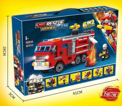 Конструктор Пожарная команда 6 в 1 / 481 детали (Quanguan 100044)