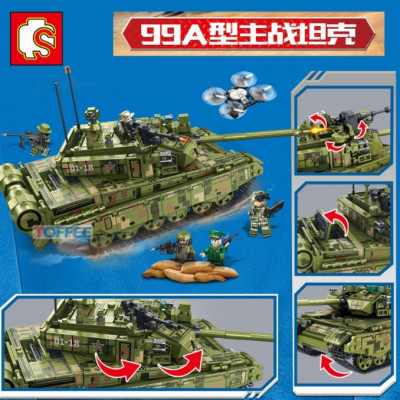 Игрушка из конструктора 105751 Sembo Block Основной боевой танк Тип 99А обладает хорошей маневренностью – при этом гусеницы у нее двигаются, как у настоящих танков. Башня разворачивается на 360 градусов. Крупнокалиберный пулемет также подвижен.
