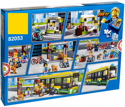 Из деталей набора Вы сможете собрать модель городского автобуса. Его корпус выполнен из контрастных жёлто-серых элементов. Спереди располагается кабина водителя, оборудованная тонированным лобовым стеклом с максимальным обзором, боковыми увеличенными зеркалами, угловатыми фарами и номерным знаком. Над кабиной закреплено табло, на котором указан номер автобуса и маршрут следования.