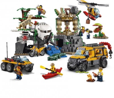 Из деталей набора можно собрать самые настоящие джунгли! Всё, что интересует учёных, расположено неподалёку от небольшого озера, населенного крокодилами. В горе находится пещера, где живёт леопард, а у входа красуется ядовитый паук.
