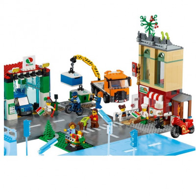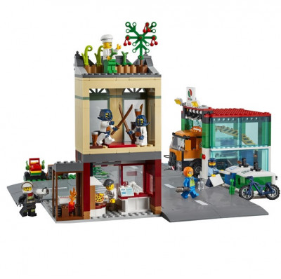 Благодаря большому количеству игровых зон и минифигурок героев, в набор City Центр города будет интересно играть всей семьей или в большой компании друзей. В городе происходит масса забавных событий: во время готовки в ресторане разгорелся огонь, но все среагировали молниеносно, и пожарный уже тушит пламя. Прямо над рестораном расположен зал боевых искусств, где опытные мастера с удовольствием обучают всех желающих. На другом конце городка работает автоматическая мойка с вращающимися щетками, которая быстро вымоет вашу машину до идеального блеска, а после мойки вы сможете зарядить свой электромобиль на специальной станции и отправиться дальше в путь.