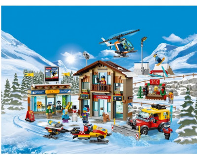 Из деталей набора собирается горнолыжный курорт, включающий все необходимые для полноценного отдыха объекты: