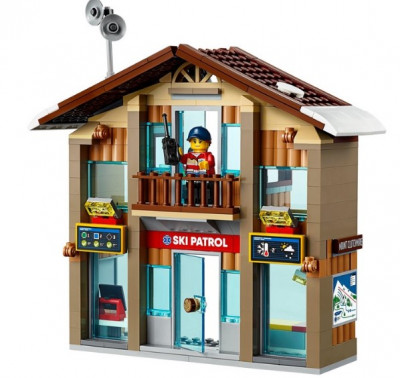 - 11 минифигурок: 3 фигурки спасателей, продавец магазина лыжного снаряжения, двое детей, пилот вертолета, продавец и покупатель киоска со сладостями, лыжник и сноубордист;