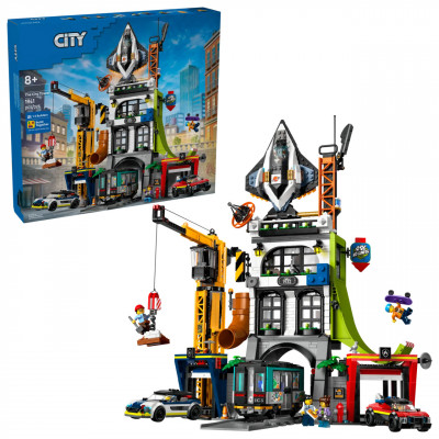 Подарите детям увлекательные игры с игровым набором Городская башня. Этот набор, предназначенный для детей от 8 лет и старше, сочетает в себе культовую тематику для любителей моделей поездов, пожарных, полицейских, космических и строительных игрушек. Трехуровневая башня расположена на вершине станции метро с соседними полицейскими и пожарными участками. Дети могут запускать космический корабль с крыши, управлять краном, выполнять трюки на гигантской рампе для катания на коньках и наслаждаться захватывающими приключениями с 7 минифигурами, включая пожарного, машиниста поезда и 5 персонажей из телешоу City No Limits.