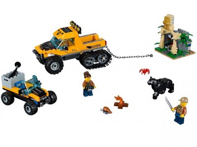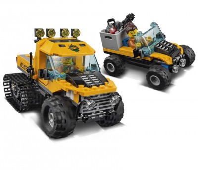 Грузовик на мощных гусеницах – отличный помощник в такой сложной и опасной миссии. Он собирается из деталей жёлтого и серого цвета. Водительскую кабину можно рассмотреть изнутри, сняв одну из деталей крыши. Капот очень габаритный, на нём расположены расширенные воздухозаборники, а также усиленная радиаторная решётка.